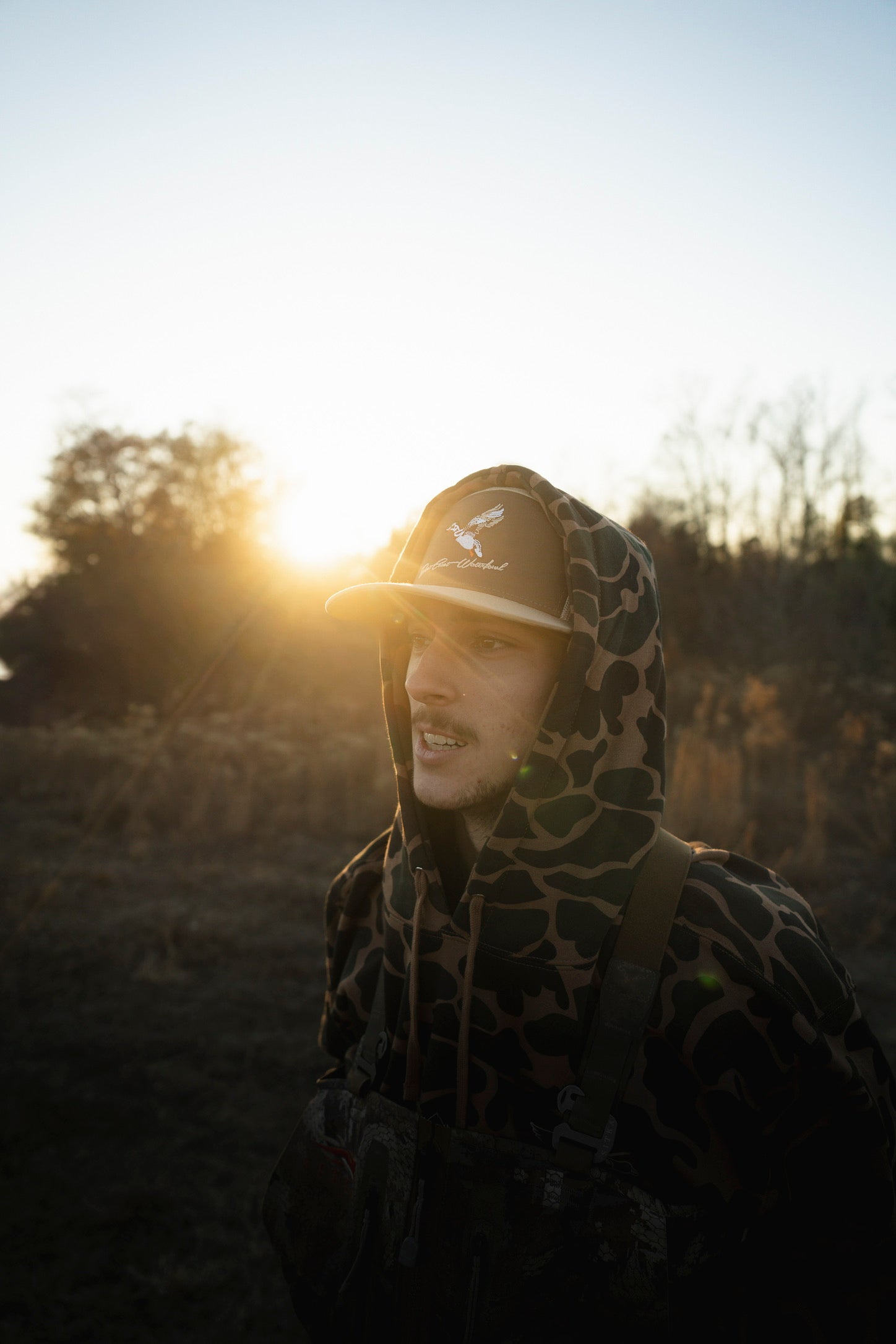 The Wood Duck, also known as the “Woodie,” is easily recognized by its crested green head and colorful plumage, as well as its distinctive call. Wood ducks can be found nesting in trees near water across North America. Our Embroidered Woodie hats don a Woodie in flight, as well as our classic ECW script logo.